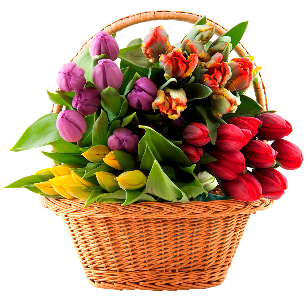 Цветы в корзинке «Микс тюльпанов» с гарантией качества, цены и быстрой доставки!